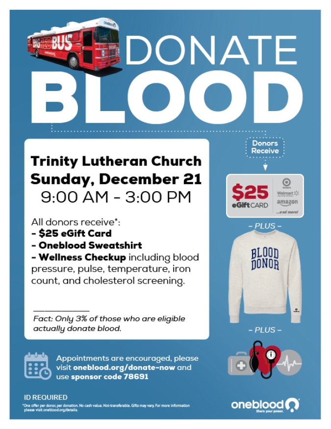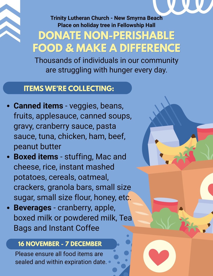 Trinity Lutheran Church will close when Volusia County Government declares the area under the hurricane warning or the public schools close.