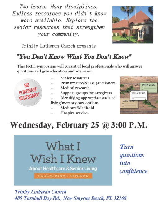On the second Tuesday of each month, Trinity houses a Caregivers Support Group, hosted by Rose Traub from Assisted Senior Services. You can expect to find a welcoming place to learn, share and receive support. This group is comprised of caregivers supporting anyone with Alzheimer's or another form of dementia. https://www.assistedlivingmadesimple.com/