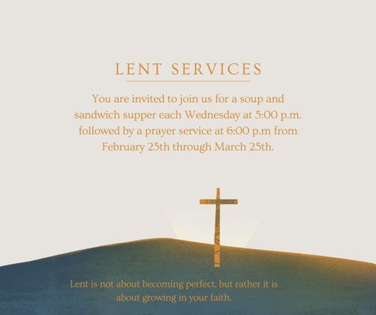 If church services are postponed due to weather, a make up service will be held on the following Wednesday at 7 pm.